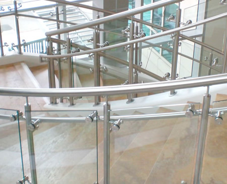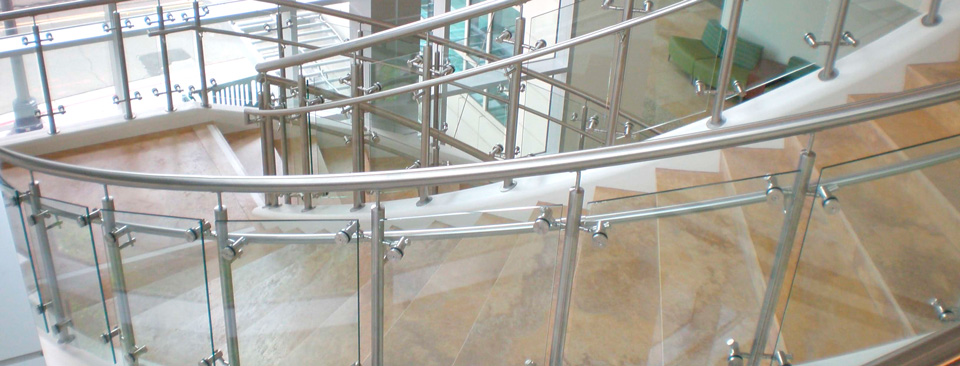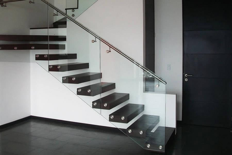 BARANDA DE ESCALERA BOTONES Y VIDRIO